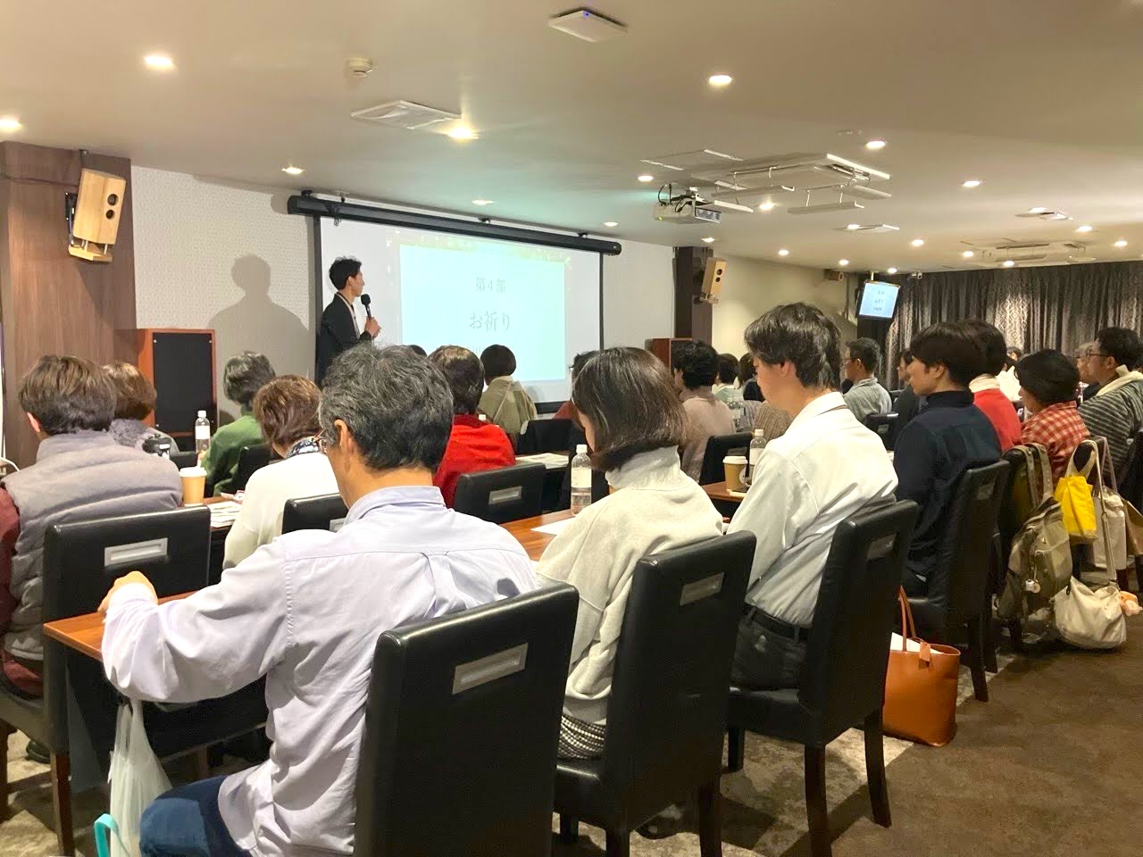 セミナーや神社参拝で扱った特別なお祈りを実践していく「祈りの会」。みんなで「祈る」という特別な時間を体験していただきます。