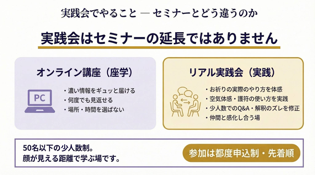 リアルにお越しいただける〝実践会〟も開催いたします。